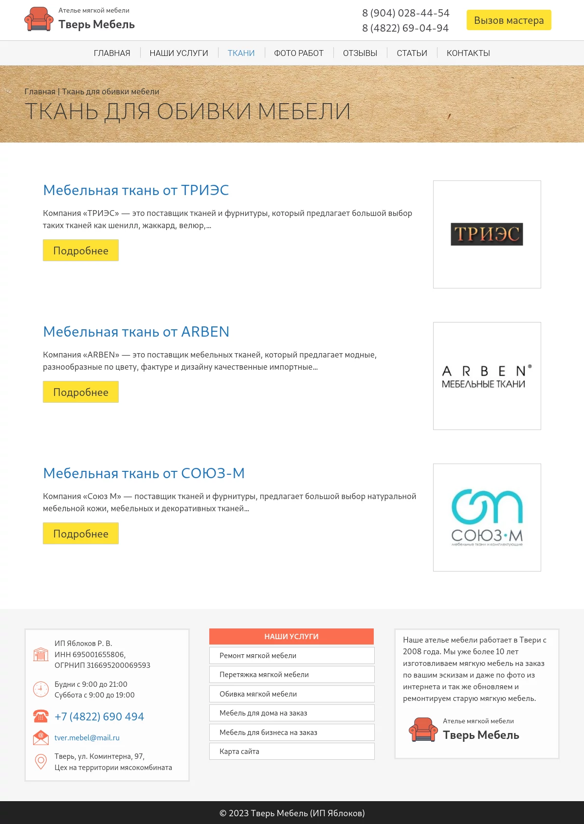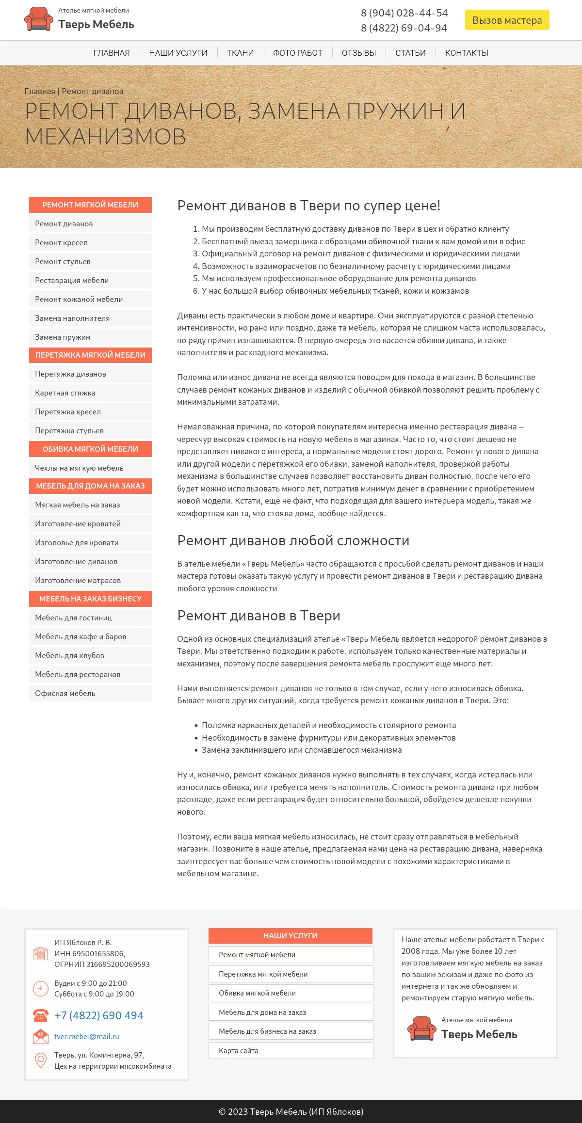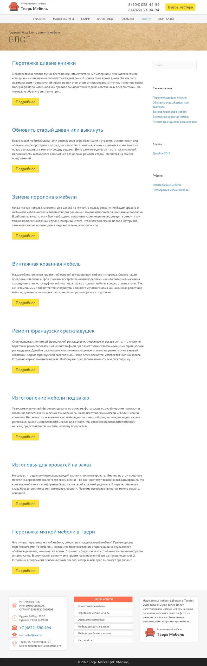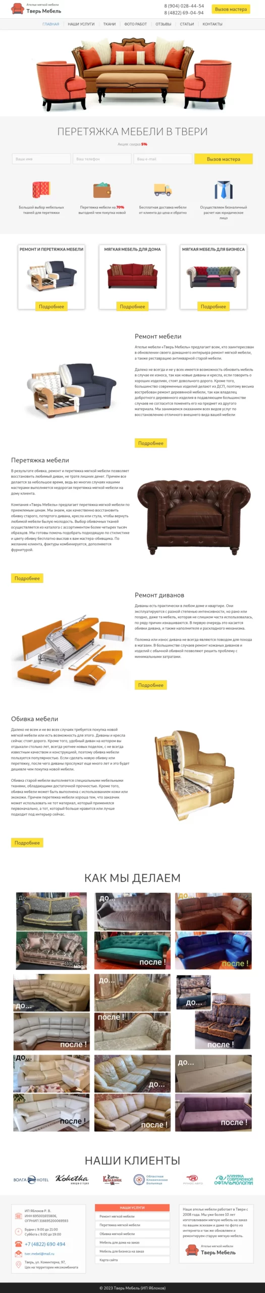 Service company WordPress website development for Tver Mebel. Custom theme development, unique design, responsive layout, SEO optimization